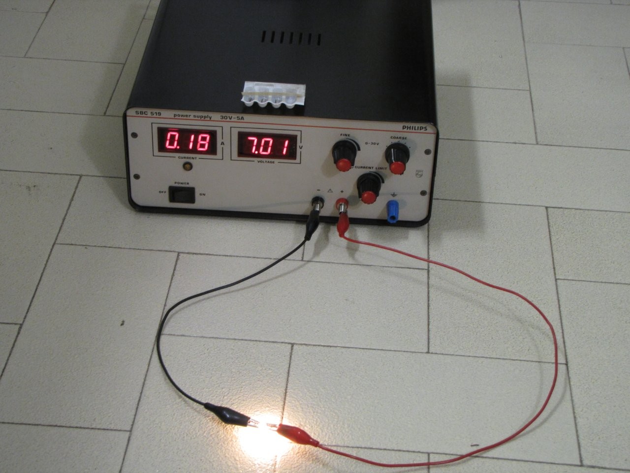 V la corrente assorbita era di 180 mA con una luminosità eccessiva, ovviamente