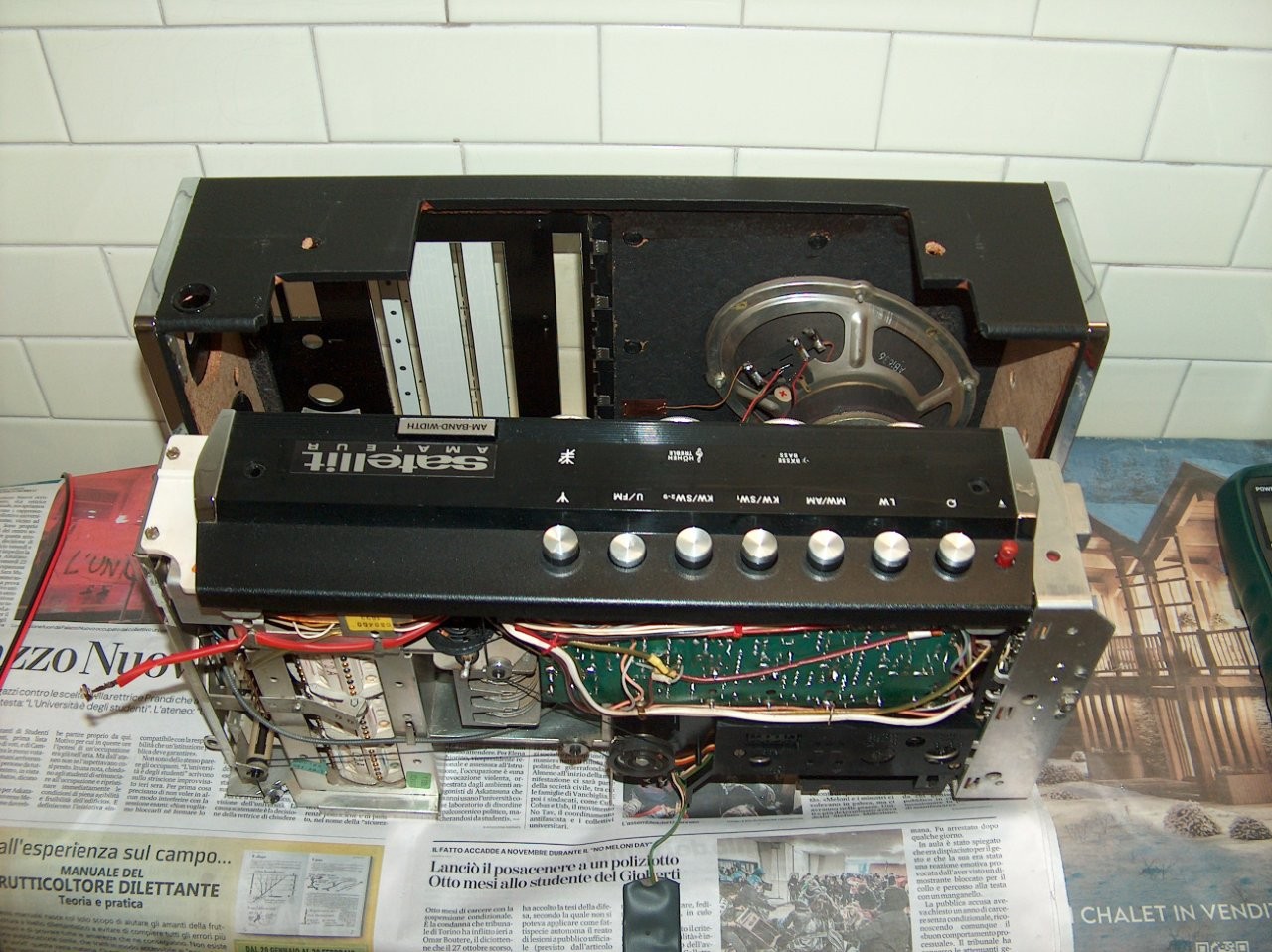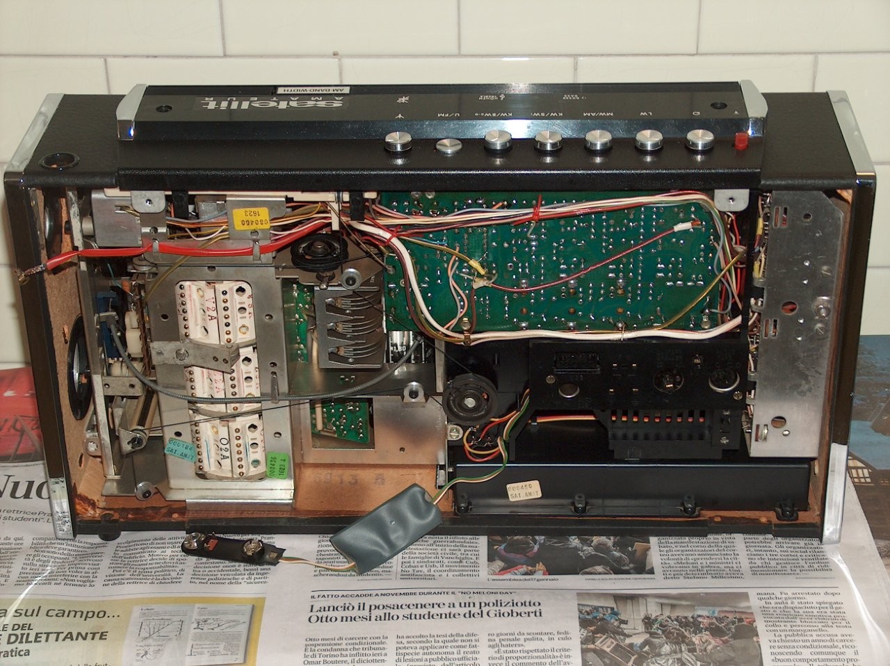 prima cosa si posiziona la radio di fronte al mobiletto, si saldano i fili